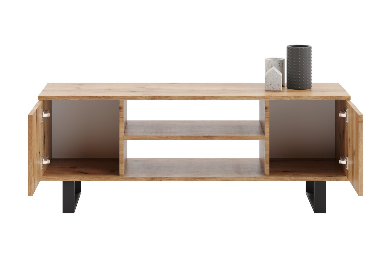 Szafka RTV FOCUS 135 cm loft, nogi metalowe, nadruk lamele - Dąb Craft