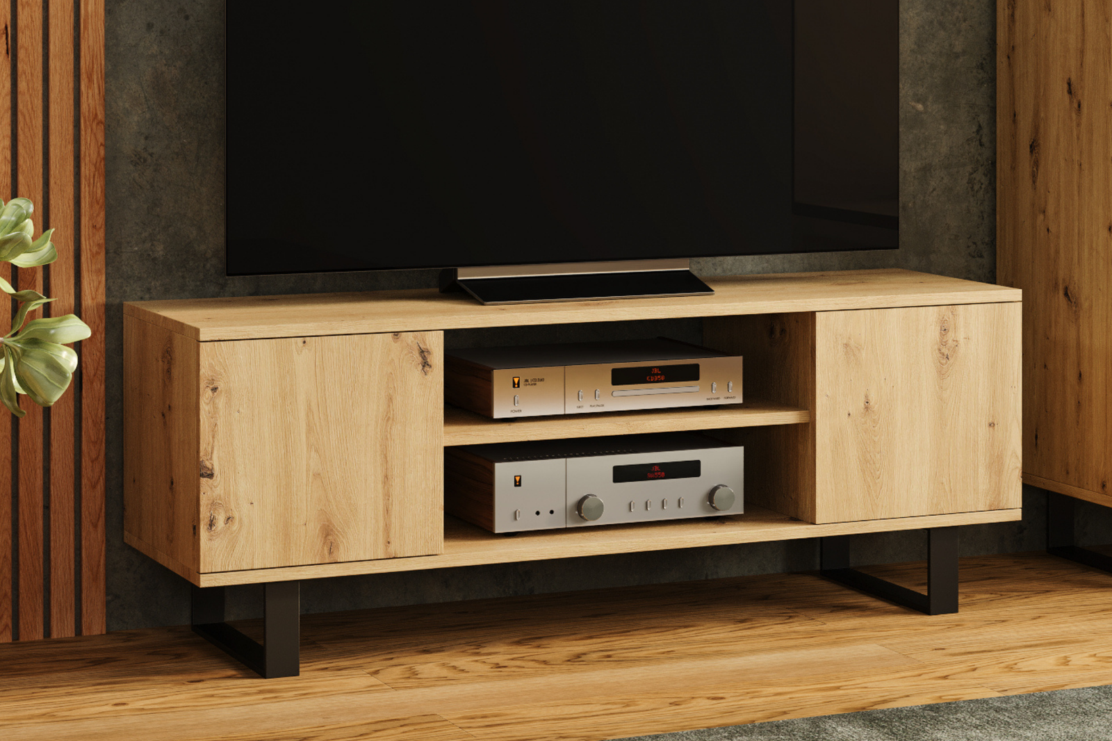 Szafka RTV FOCUS 155 cm loft, nogi metalowe - Dąb Artisan