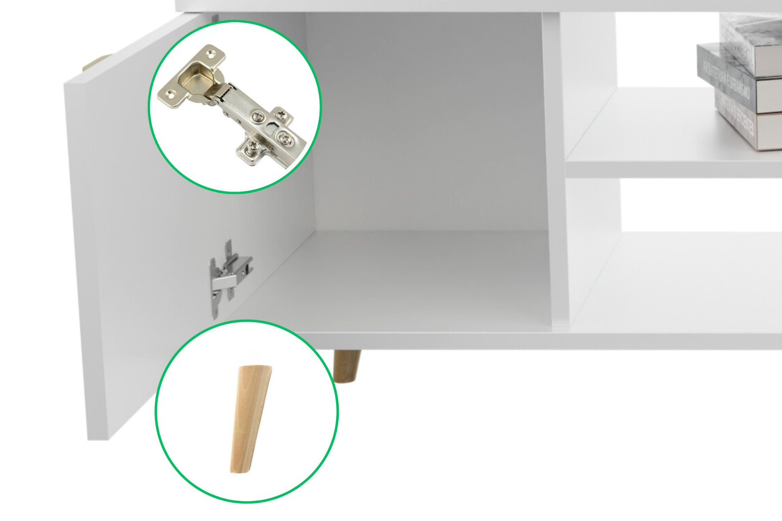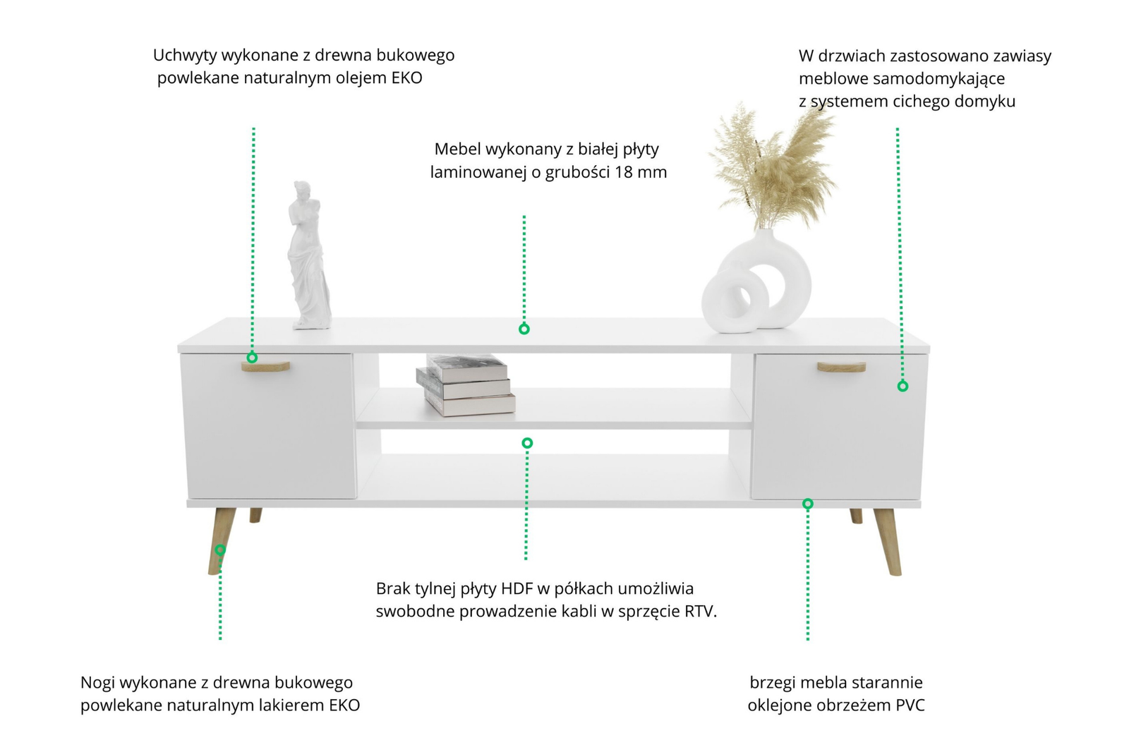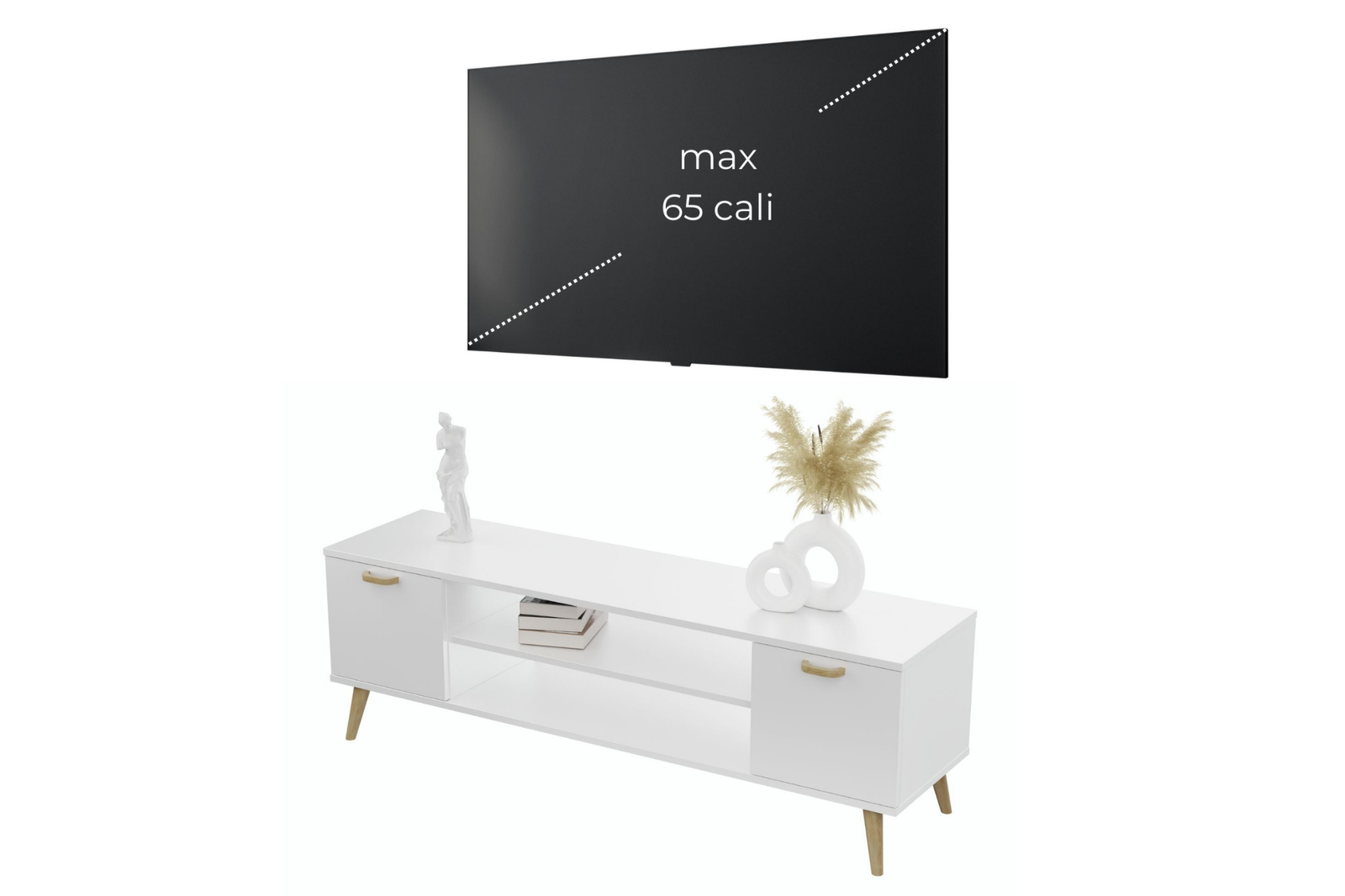 Szafka RTV FOCUS 155 cm skandynawska nogi drewniane - Biały