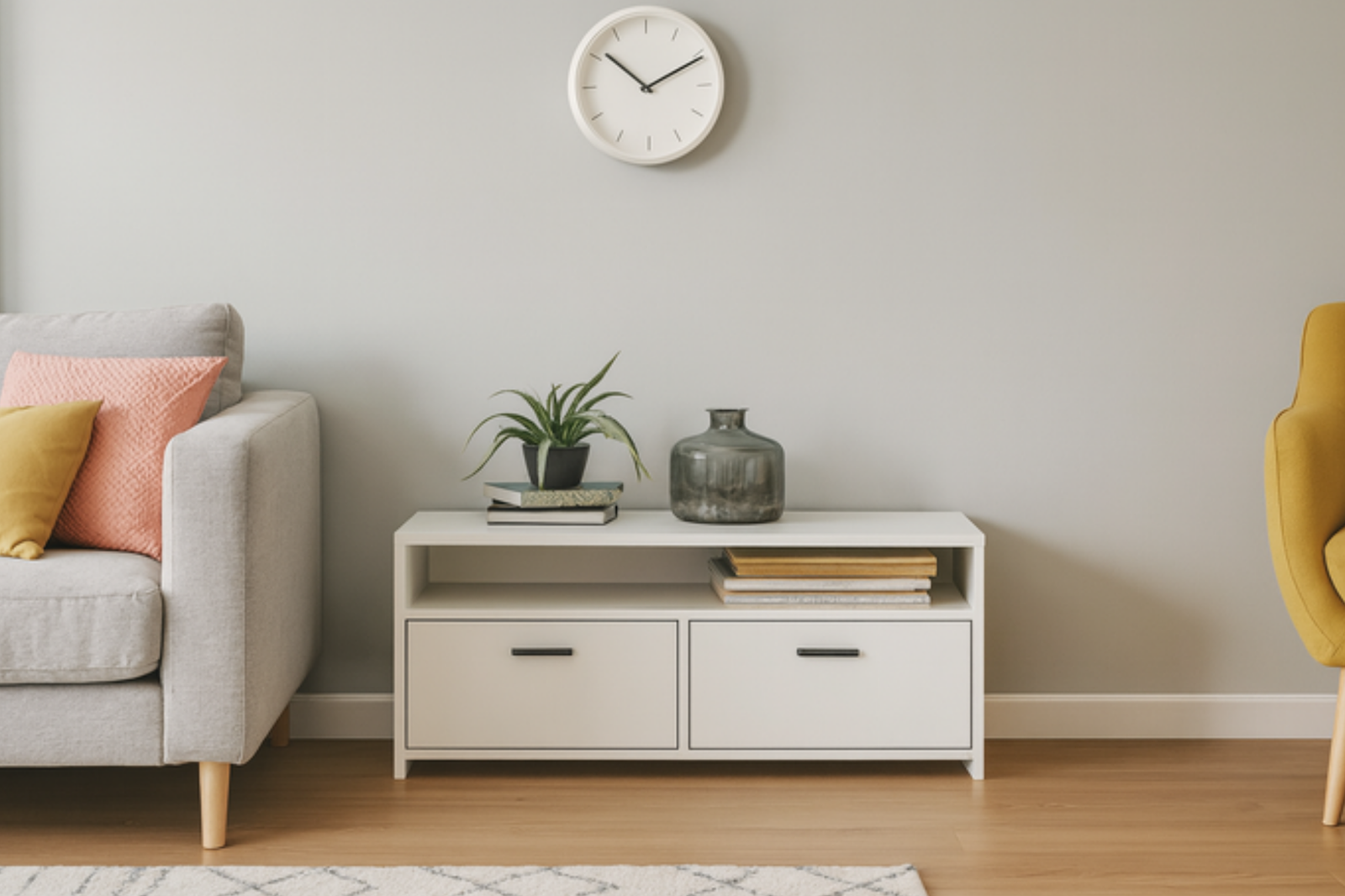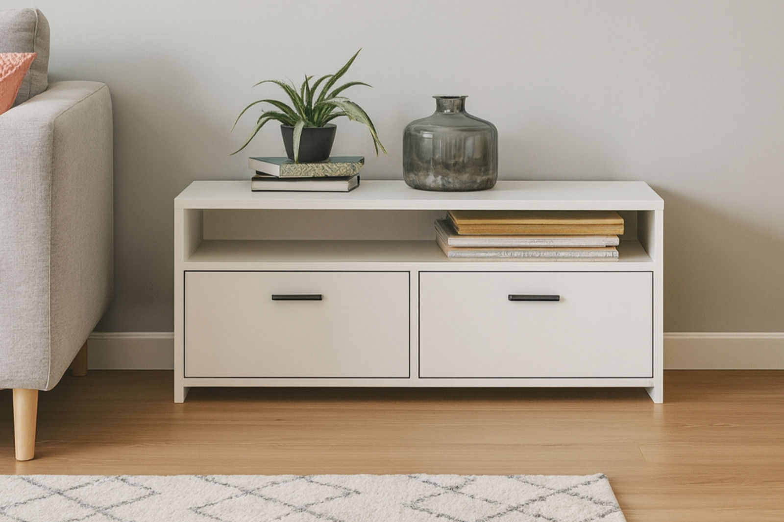 Szafka RTV jest funkcjonalna i pojemna, a jednocześnie nie zajmuje w pokoju wiele miejsca. Model MILAN wyposażony został w dwie zamykane szafki oferujące przestrzeń do przechowywania drobnych przedmiotów, takich jak instrukcje obsługi, piloty, ulubione gry czy filmy na nośnikach. Dzięki temu wszystko pozostaje uporządkowane i estetycznie ukryte, a jednocześnie łatwo dostępne. Dodatkowo, otwarta półka nad szafkami zapewnia przestrzeń na urządzenia multimedialne - odtwarzacze, konsole do gier czy dekodery - umożliwiając praktyczne i wygodne zorganizowanie całego sprzętu audio-video w jednym miejscu.