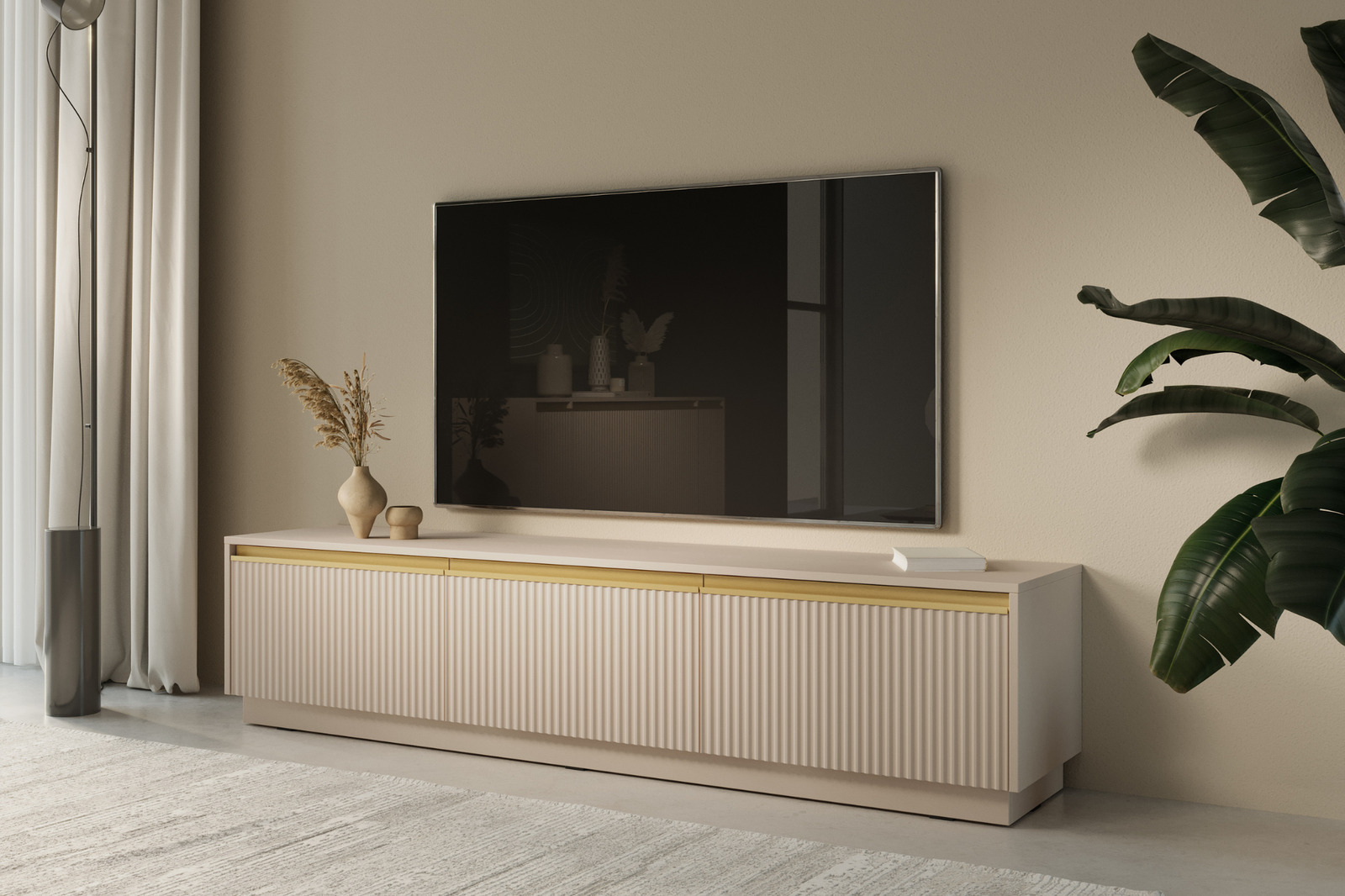 Szafka RTV PRESTIGE 180 cm - Beżowy / Złoty