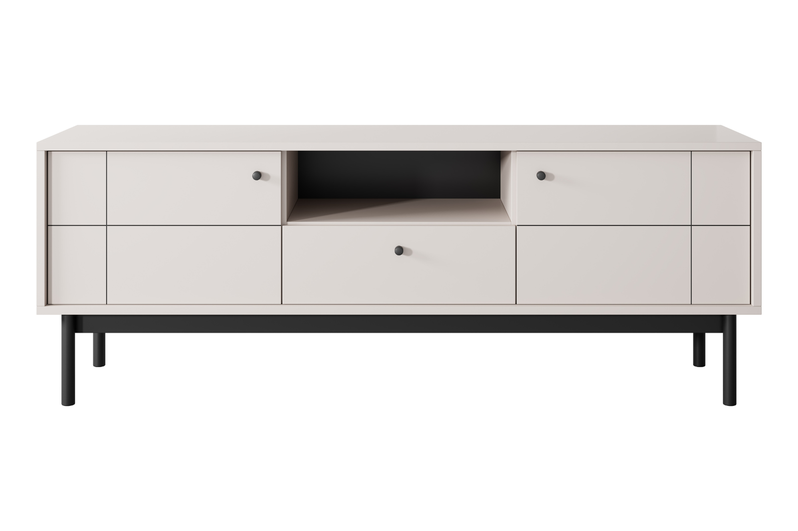 Szafka RTV SILEN to doskonałe połączenie prostoty, ciepła naturalnych barw i nowoczesnego minimalizmu. Łączy w sobie japońską filozofię spokoju i skandynawską funkcjonalność. Jasny odcień kaszmir nadaje wnętrzu przytulności, a czarne drewniane nóżki wprowadzają nutę elegancji i kontrastu. To mebel, który zachwyca nie tylko wyglądem, ale również praktycznymi rozwiązaniami, doskonale wpisując się w aranżacje salonów o stonowanym, naturalnym charakterze.