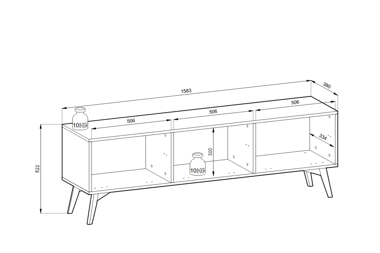 158 × 52 × 38 cm – doskonałe proporcje pod większość telewizorów. -