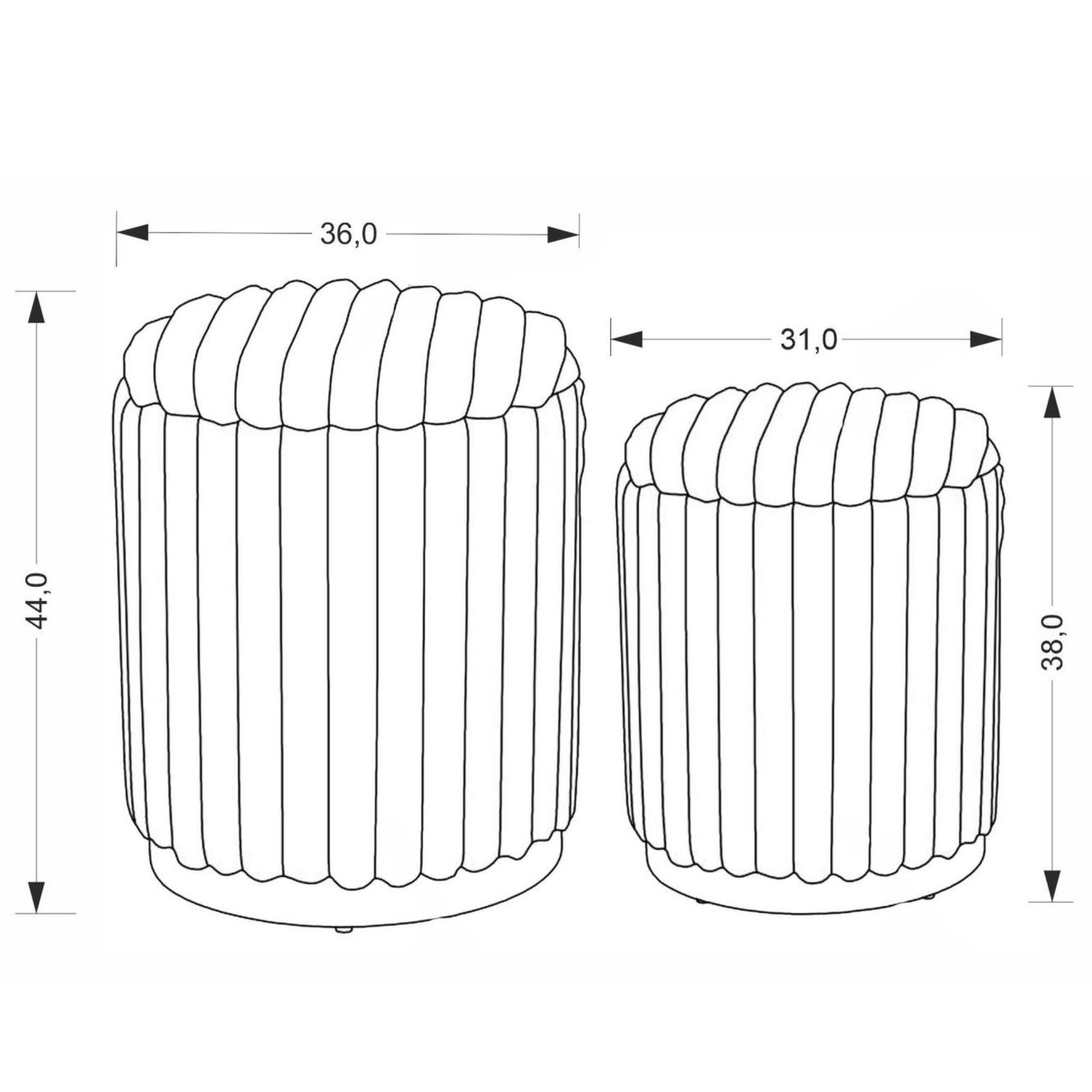 - Mniejszą pufę można przechowywać w środku większej.