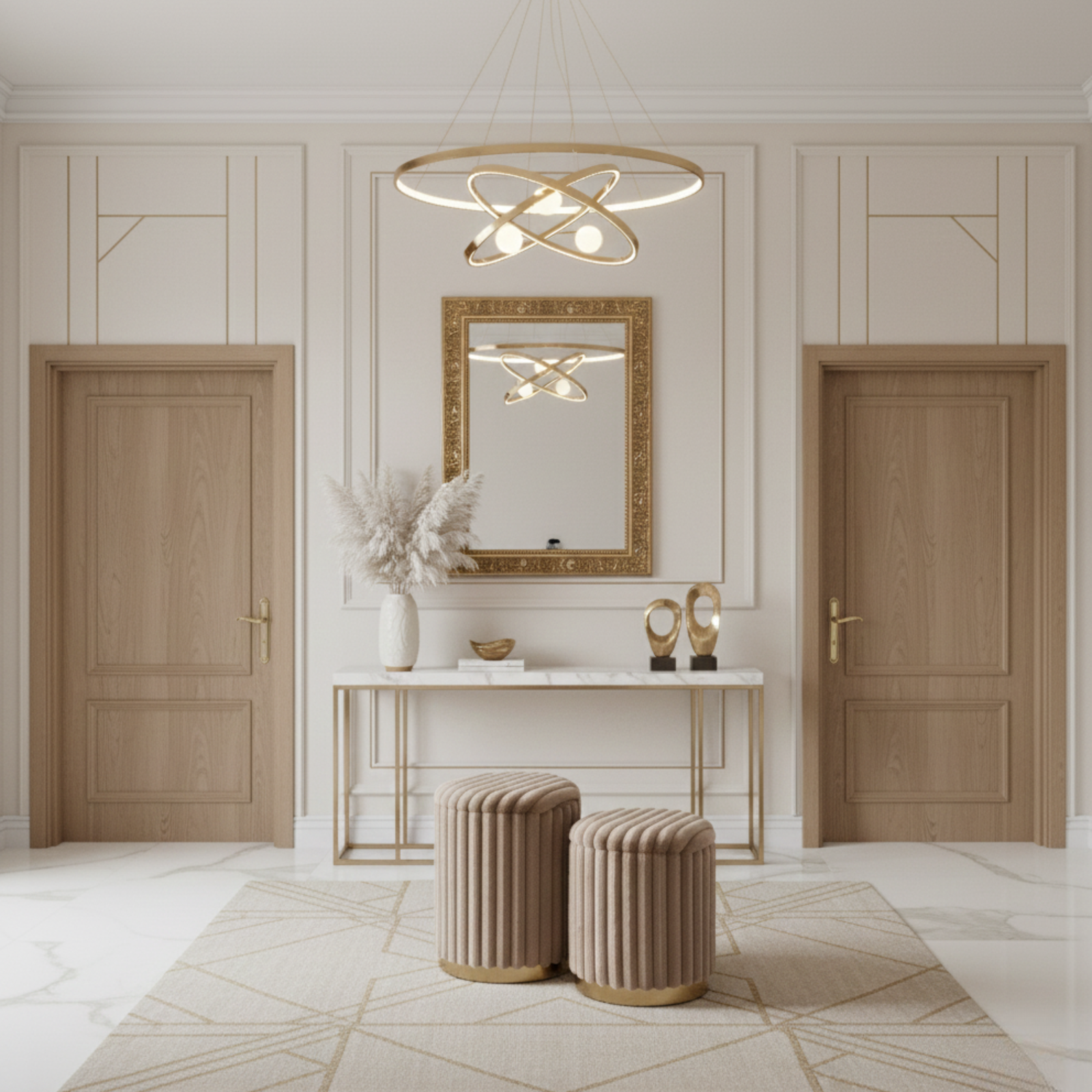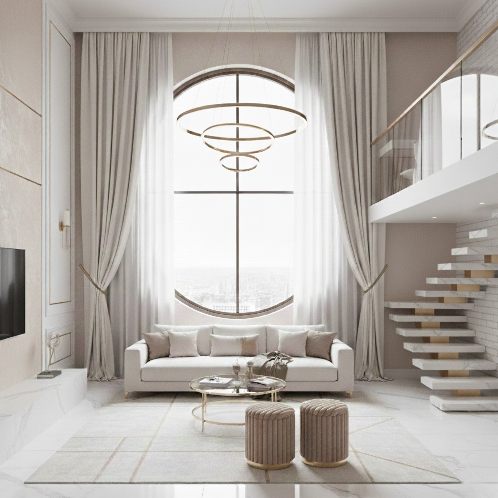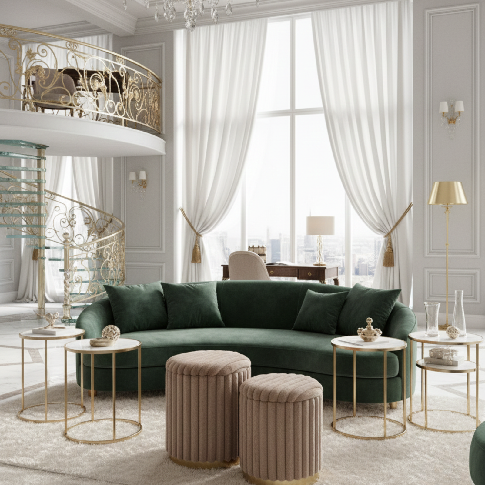Pufy MIRELLA to elegancki zestaw dwóch tapicerowanych puf, który łączy nowoczesny styl z nutą glamour. Miękka, włochata tkanina w kolorze cappuccino nadaje im wyjątkowej przytulności, a metalowa podstawa w złotym odcieniu podkreśla luksusowy charakter mebla. To praktyczne i dekoracyjne rozwiązanie do wielu wnętrz.