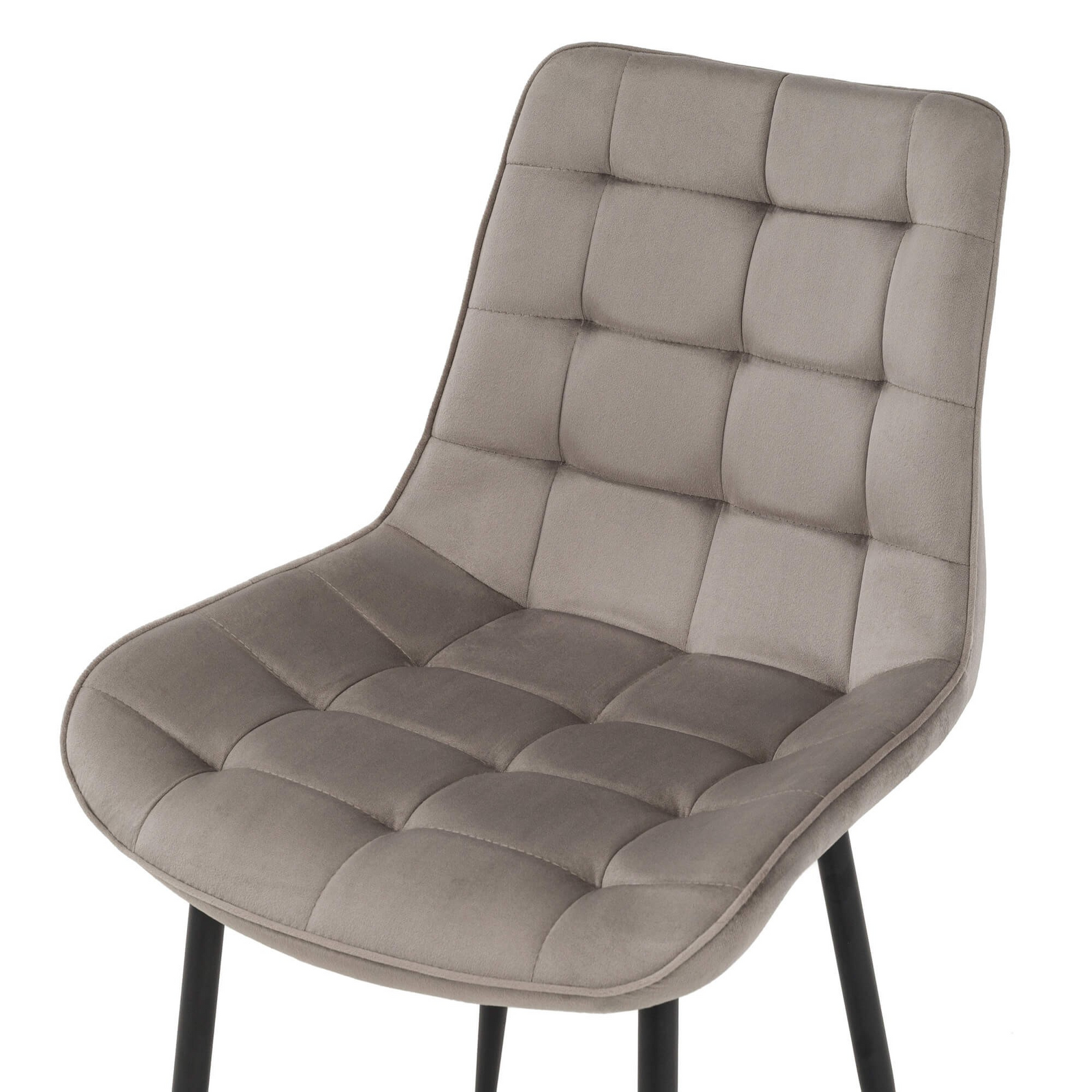 Krzesło tapicerowane delikatną w dotyku tkaniną welur na wysokich, smukłych czarnych metalowych nogach łączy elegancję z nutą loftowego charakteru. Charakterystyczne pikowania podkreślają elegancki styl i podnoszą walory estetyczne, uatrakcyjniając wygląd tego minimalistycznego mebla. Uniwersalny design sprawia, że krzesło doskonale sprawdzi się w przestrzeni domowej - od kuchni, jadalni, poprzez salon, jak również w przestrzeniach komercyjnych - biurze, sali konferencyjnej czy poczekalni, gdzie połączenie stylu i komfortu jest kluczowe.