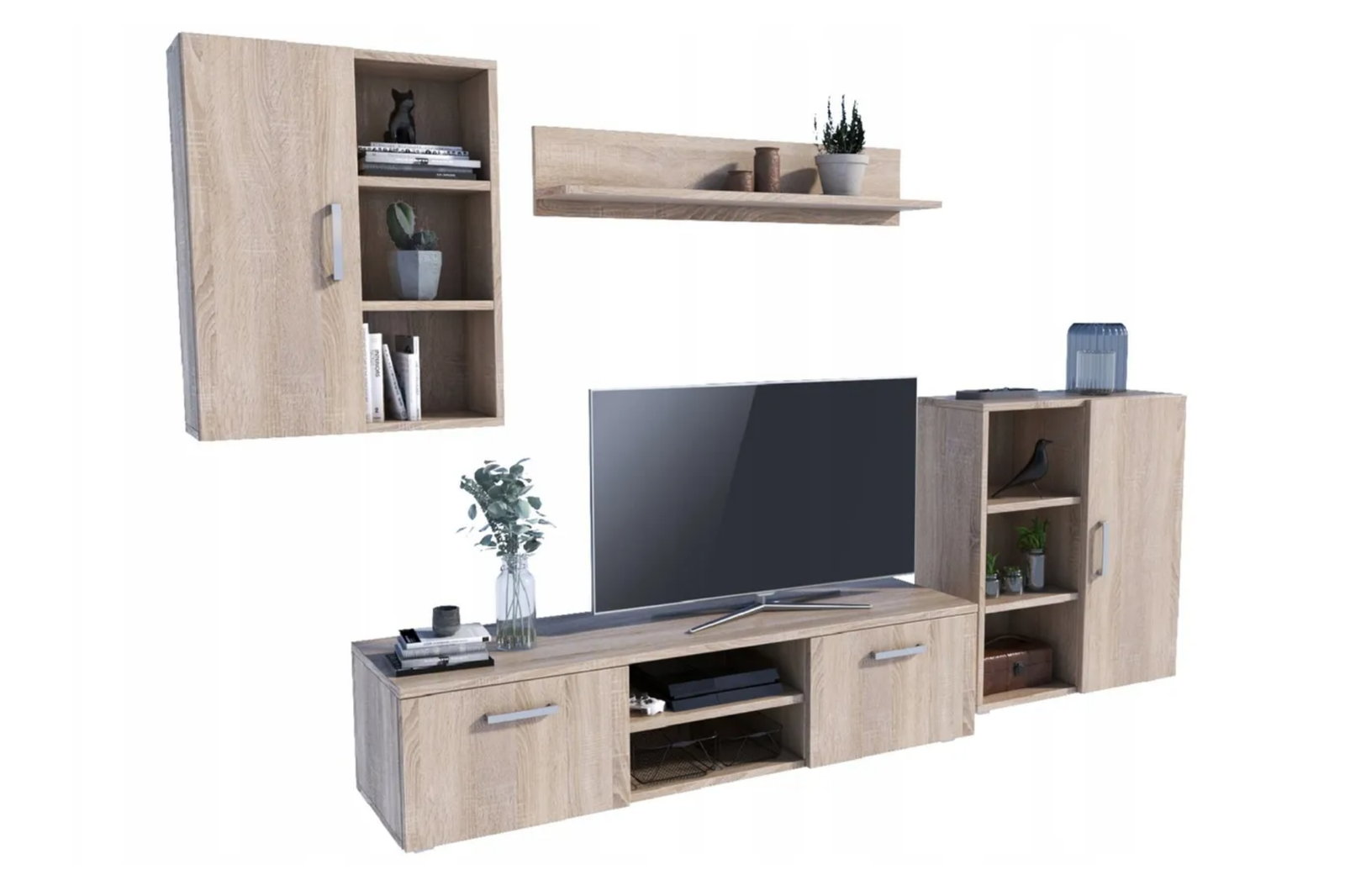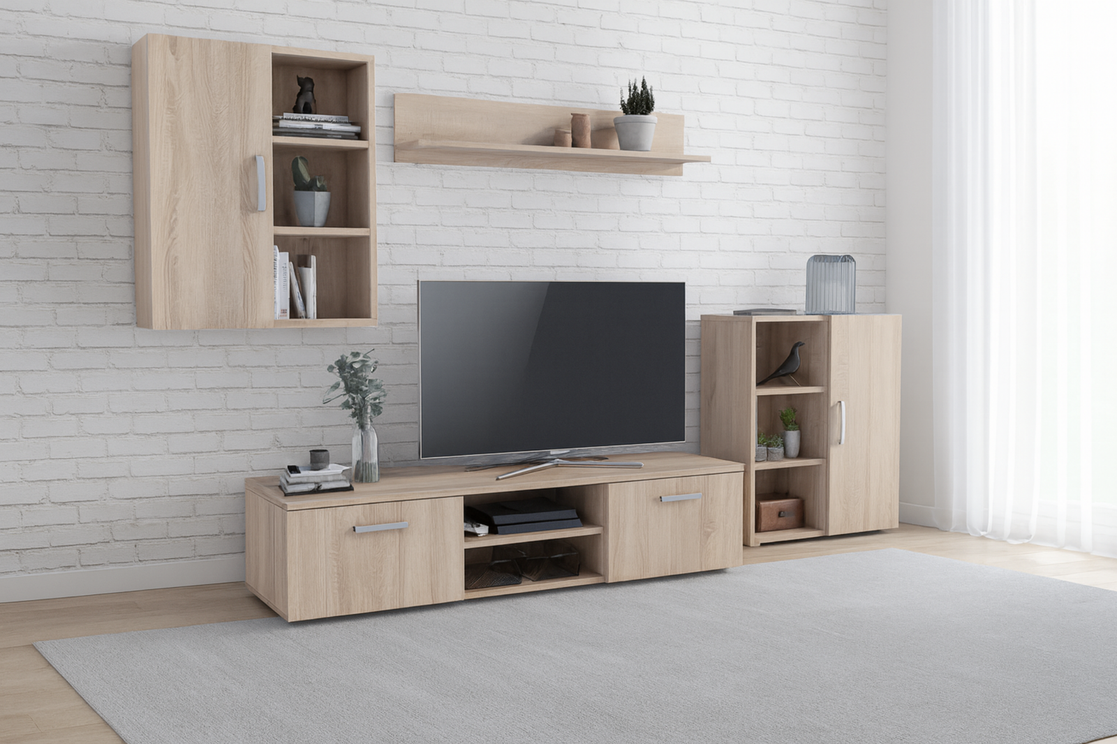Zestaw mebli do salonu ICARO został zaprojektowany z myślą o osobach ceniących sobie zarówno estetykę, jak i komfort użytkowania. Zaprojektowany z pomysłem zestaw - szafka RTV, szafka stojąca, szafka wisząca oraz półka ścienna wisząca - sprawia, że łatwo utrzymasz porządek, schowasz wszystko co potrzebne i wyeksponujesz dekoracje. Meblościanka ICARO nie tylko zdobi przestrzeń, ale też odpowiada na potrzeby najbardziej wymagających użytkowników, oferując dużo miejsca do przechowywania i eksponowania rzeczy.