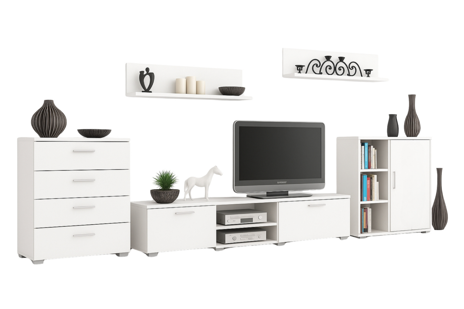 Zestaw mebli do salonu SOFEN II szafka RTV, komoda, szafka, półki - Biały