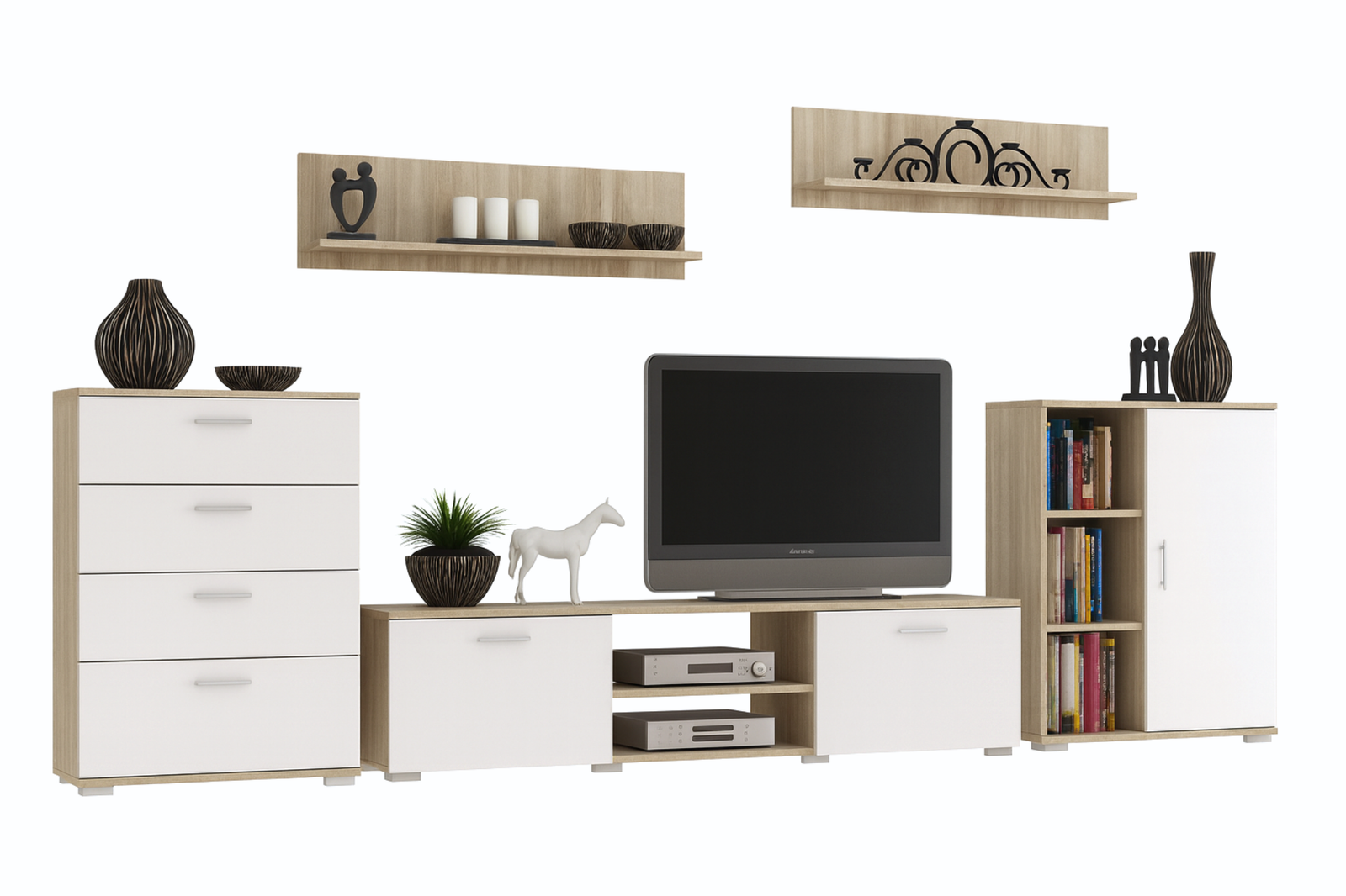 Zestaw mebli do salonu SOFEN II szafka RTV, komoda, szafka, półki - Dąb Sonoma / Biały