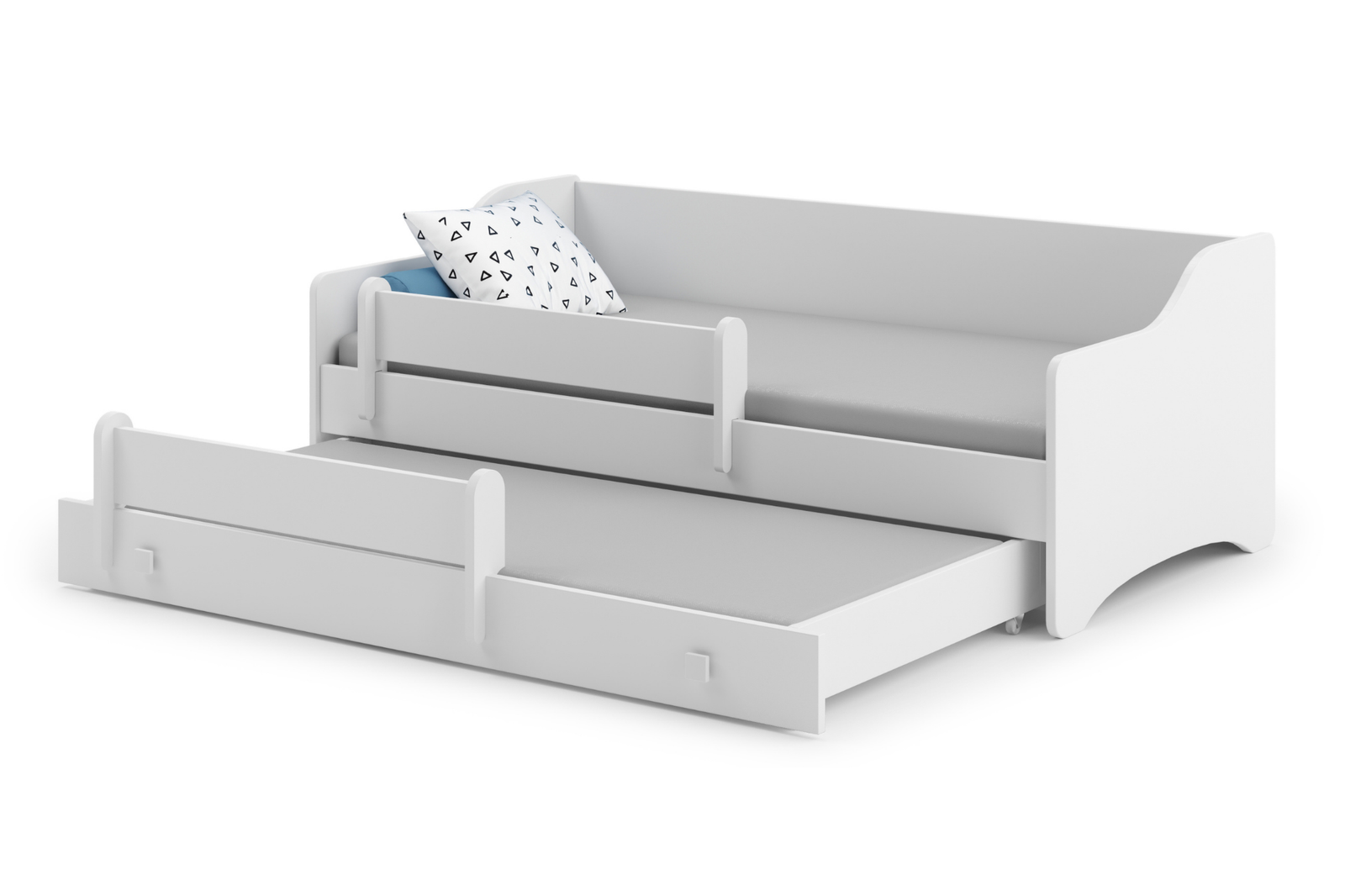 Łóżko dziecięce ERYK II to połączenie komfortu, bezpieczeństwa i funkcjonalności w jednym meblu. Jego interesujący, a zarazem minimalistyczny design sprawia, że z łatwością dopasowuje się do różnych stylów wnętrz, a przy tym doskonale sprawdzi się zarówno w pokoju chłopca, jak i dziewczynki. Wybierając model ERYK, warto zwrócić uwagę na jego praktyczne rozwiązania. Zaletą łóżka jest jego kształt - zarówno tył jak i boki są odpowiednio wysokie, dzięki czemu w ciągu dnia łóżko może pełnić rolę sofy, na której można wygodnie usiąść i oprzeć plecy. Dzięki wysuwanemu dolnemu poziomowi, pojedyncze łóżko w łatwy sposób zamienia się w podwójne, co pozwala optymalnie wykorzystać przestrzeń – idealne dla rodzeństwa lub gości.