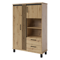 Wielofunkcyjna szafa NADI to uniwersalny mebel, który sprawdzi się w wielu pomieszczeniach. Mebel oferuje wiele miejsca do przechowywania i eksponowania przedmiotów.